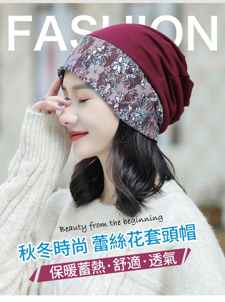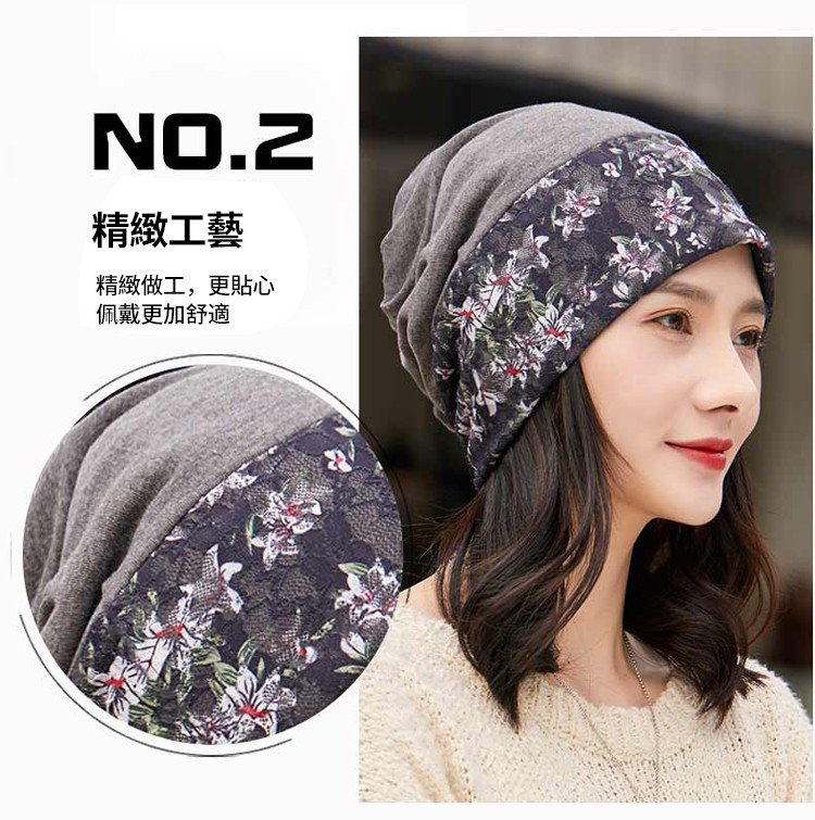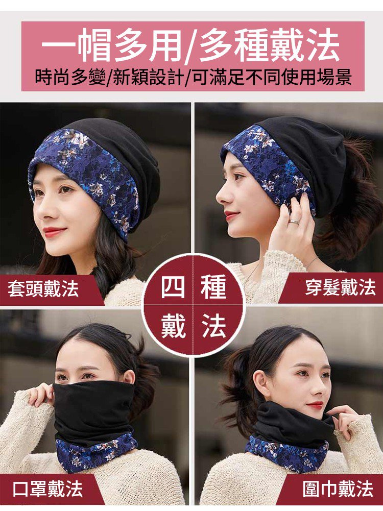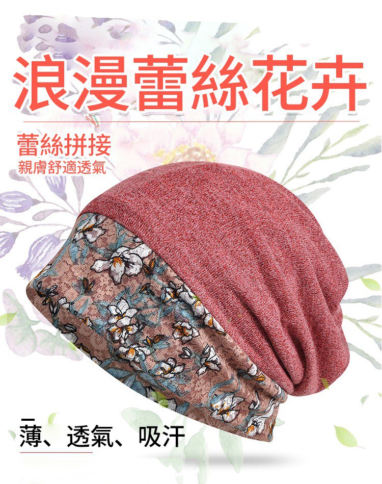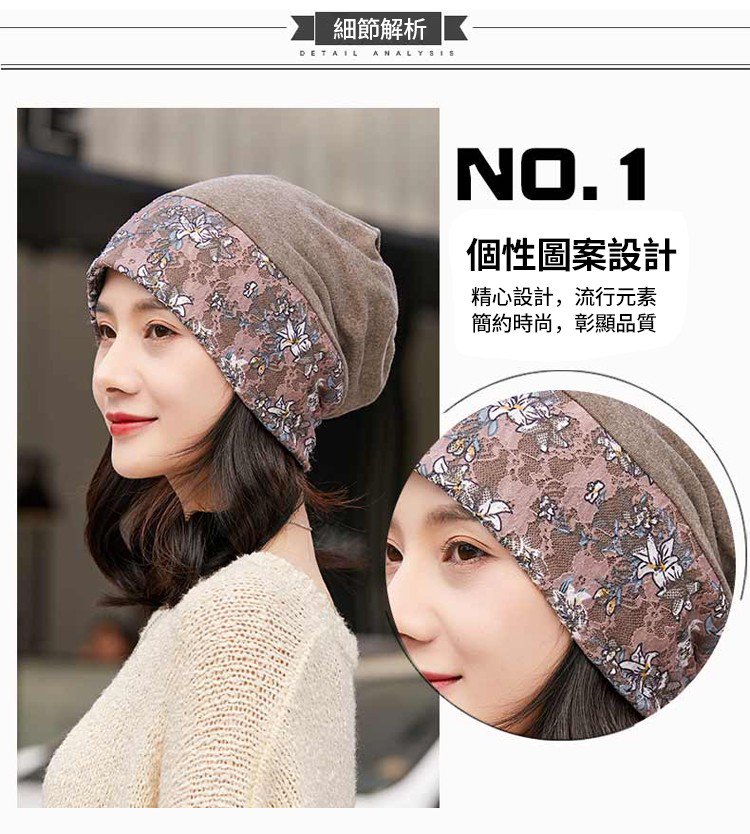 「浪漫蕾絲花卉頭套」帽子/圍巾兩用;蕾絲拼接雙層設計,親膚柔軟,透氣、吸汗, 現超夯$599買一送一!