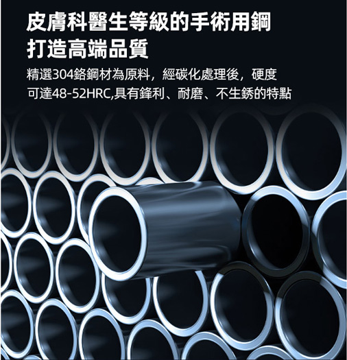 安全性:100%皮膚科醫生等級的手術用鋼可防止腐蝕並將感染風險降至最低。
