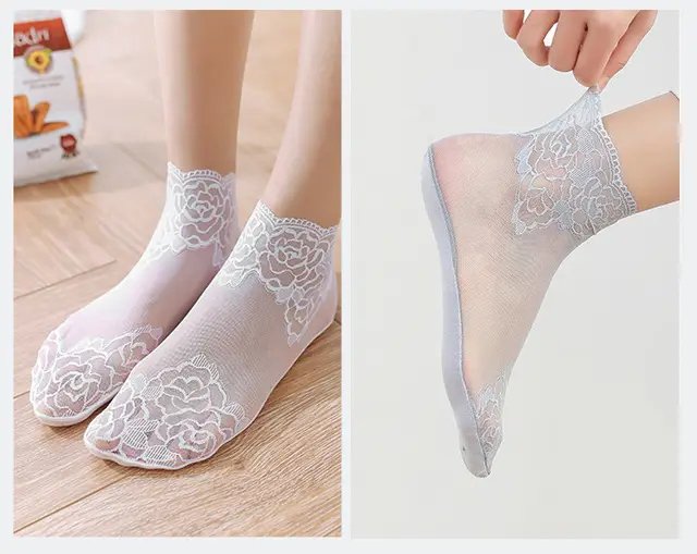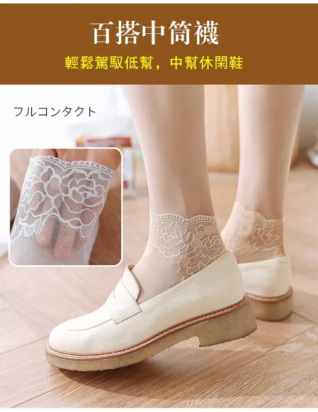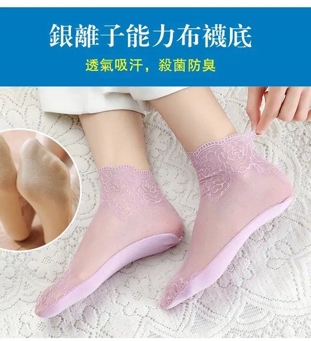 日式蕾絲棉底透氣吸汗抗菌襪